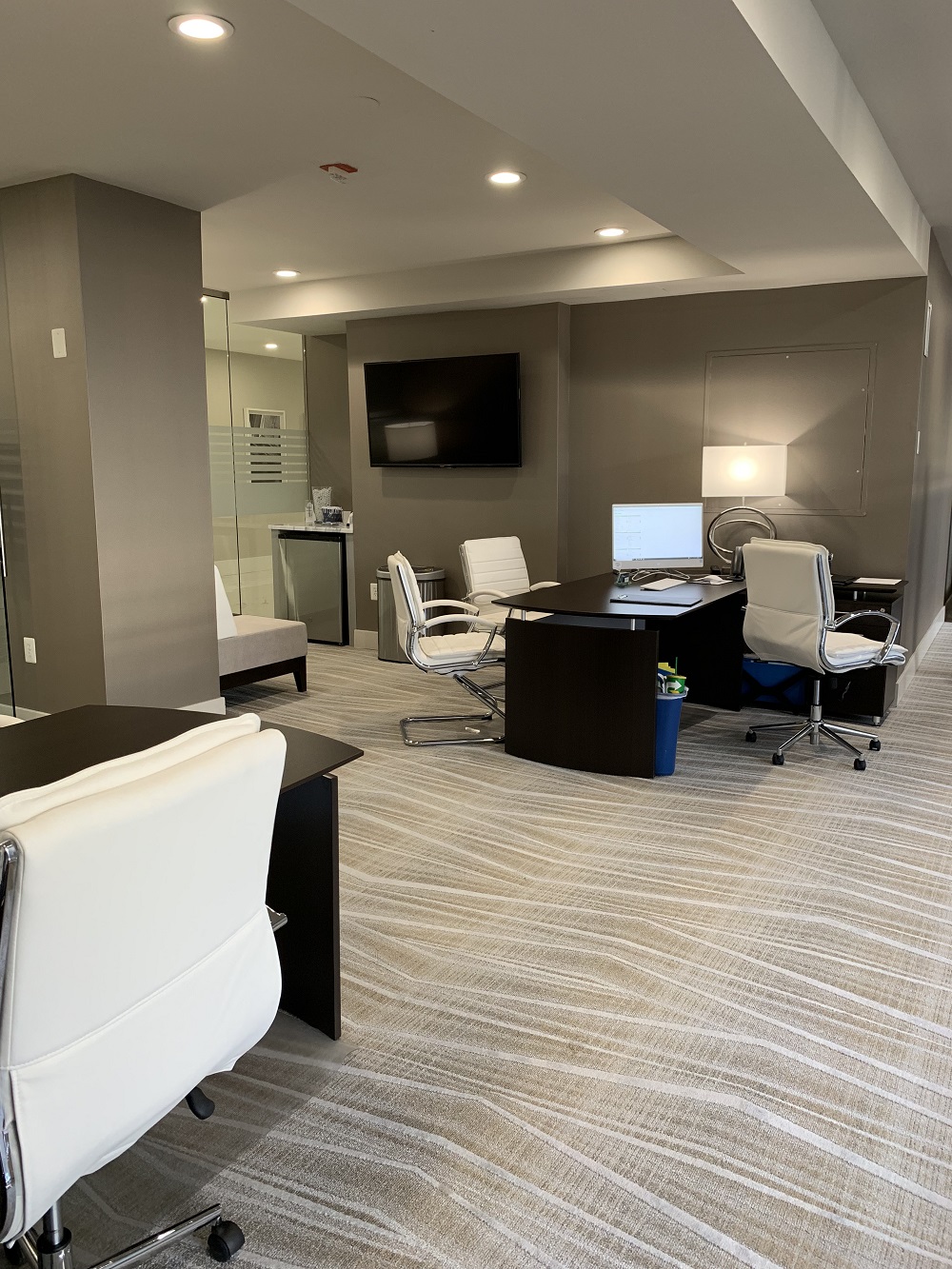 Carpet, Wall Coverings, Porcelain Tile, Lighting, and Furnishings were all selected with great care and consideration to compliment the original marble floor in the main lobby.