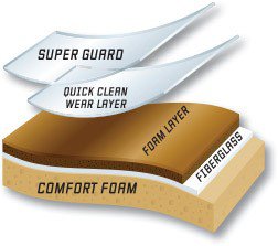 Earthscapes is an amazing cushioned vinyl. Its secret lies in its layers. Technologically advanced, this unique flooring features a layer of fiberglass fully encapsulated with PVC vinyl for complete dimensional stability, a comfort foam cushion, and a urethane wear layer that is highly resistant to stains and traffic.